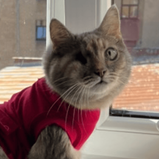 Tiene un solo ojo, pero está sano y es muy cariñoso